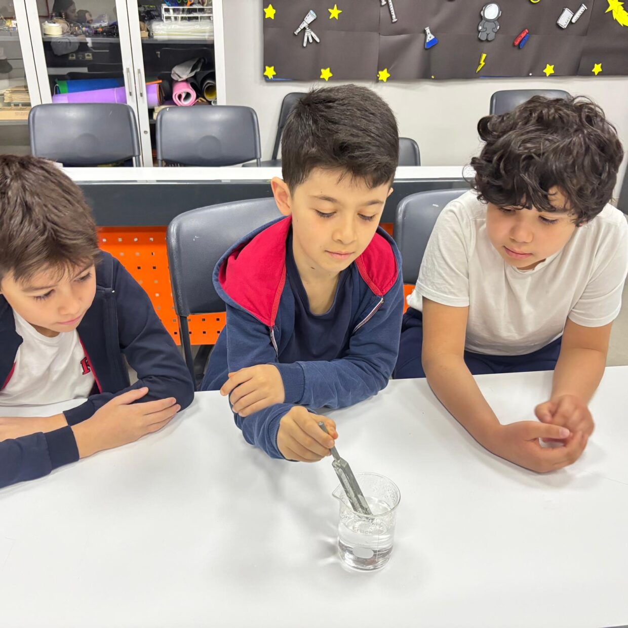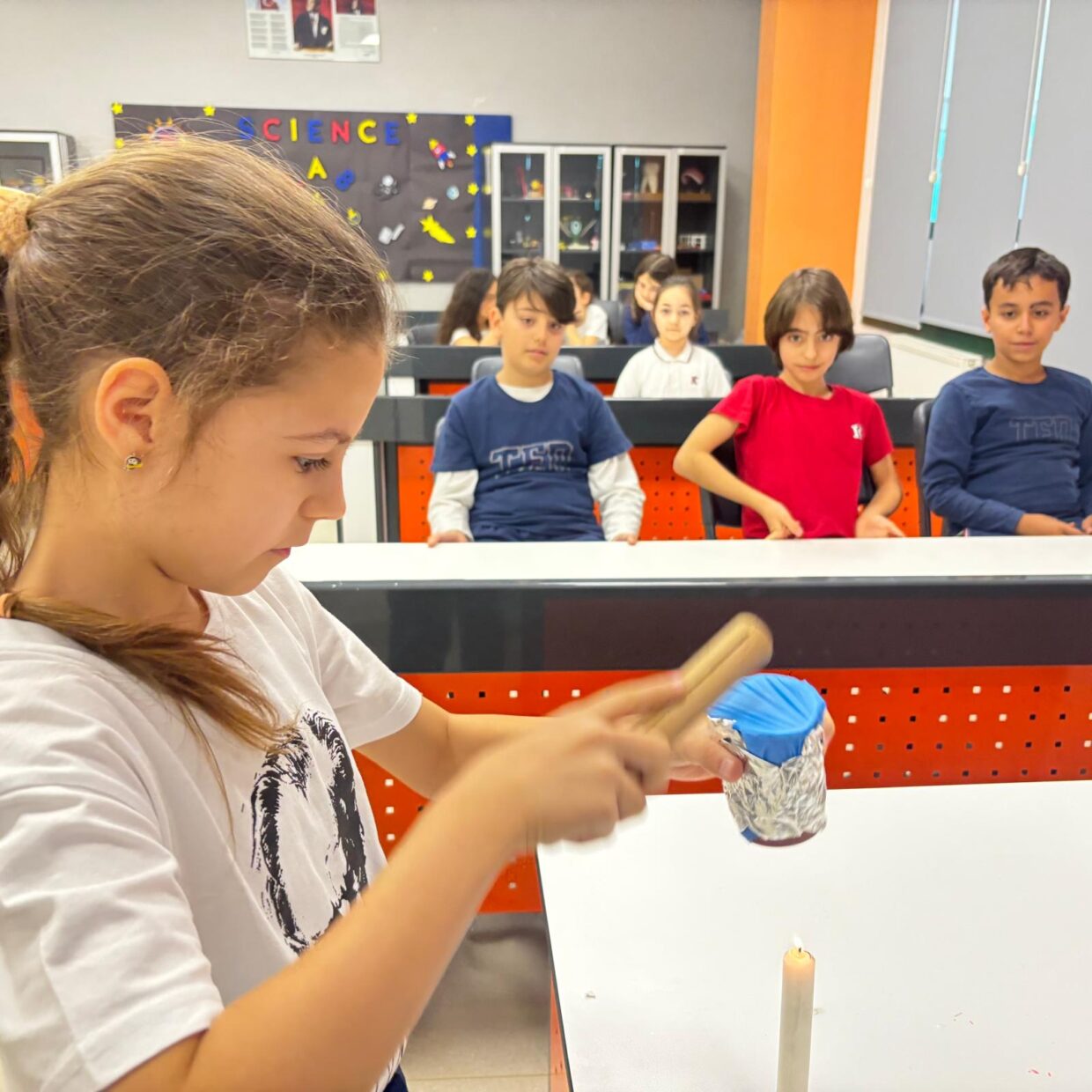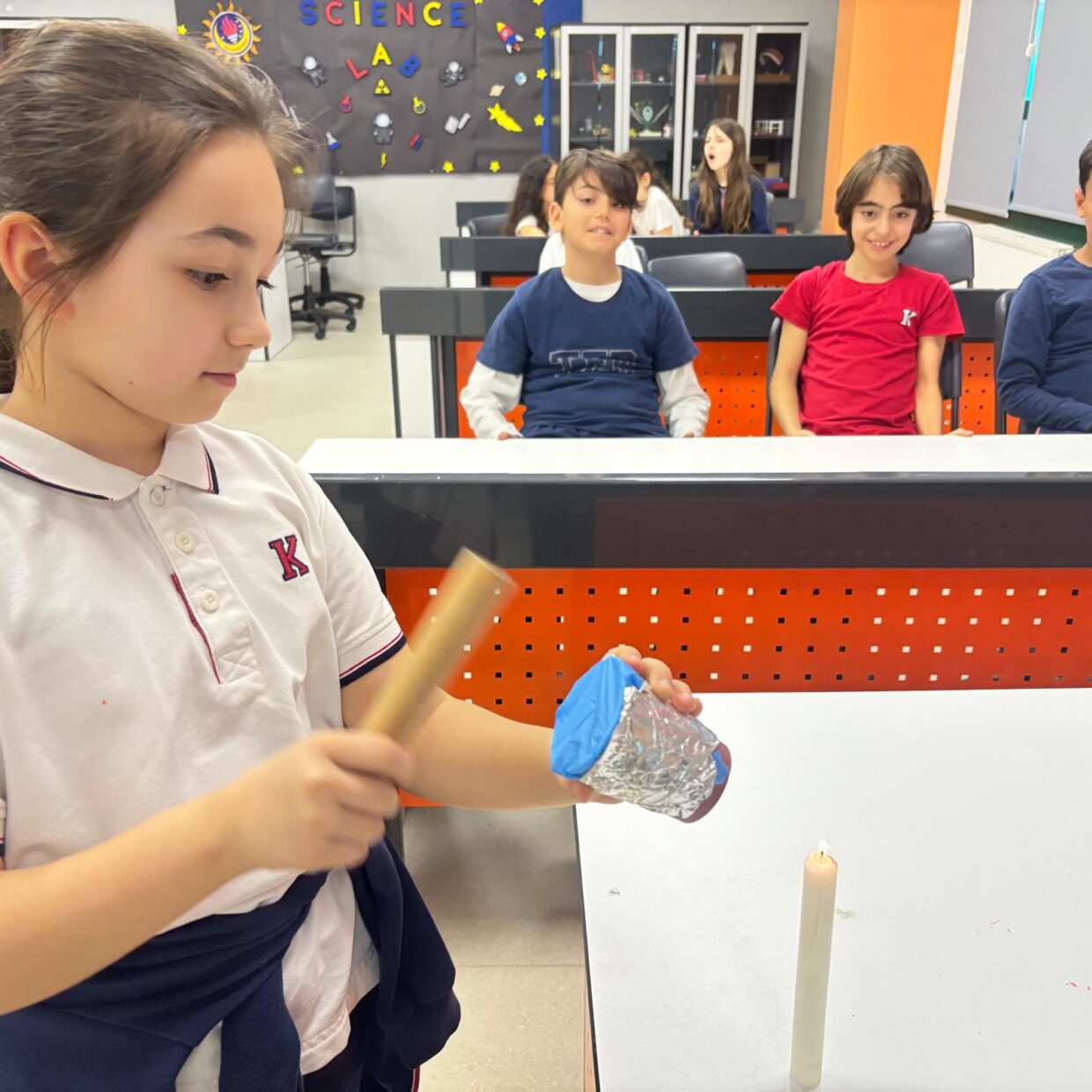 4.sınıf öğrencilerimizle fen bilimleri laboratuvarında ışığın doğrusal hareketini ve sesin dalgasal yayılımını inceleyen deneyler gerçekleştirdik. Aynı zamanda ışık ve sesin birer enerji türü olduğunu yaptığımız uygulamalarla gözlemledik. Öğrencilerimizin aktif katılım sağladığı bu çalışmalar, hem eğlenceli hem de pekiştirici bir öğrenme deneyimi oldu.