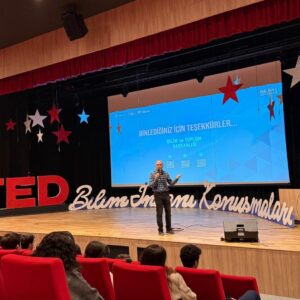 Lise Fen Bilimleri Bölümünün düzenlediği TED Bilim İnsanı Konuşmaları’nda bu ay konuğumuz İstanbul Teknik Üniversitesi Bilgisayar Mühendisliği öğretim üyesi Dr. Öğr. Üyesi Yavuz Köroğlu oldu. ‘Yapay Zekâ ile Keşif’ başlıklı konuşmasında hocamız, yapay zekânın veri temelli öğrenme yaklaşımlarını, algoritmaların karar verme süreçlerini ve bu sistemlerin yeni bilgi üretme ile keşif gerçekleştirme mekanizmalarını öğrencilerimizle kapsamlı bir şekilde ele aldı. Ayrıca hocamız, TED Atakent Radyo bünyesinde gerçekleştirdiğimiz podcast yayınına katılarak yapay zekâ süreçlerine dair değerli görüşlerini daha geniş bir kitleyle paylaşma fırsatı buldu.